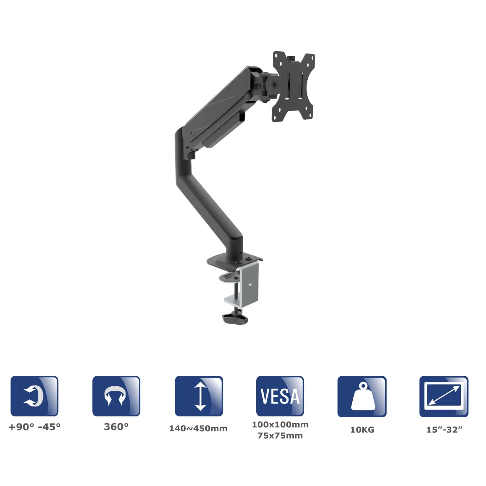 Stojalo za monitor s plinsko vzmetjo Akyga® AK-MB-05 je sodobna rešitev, ki združuje funkcionalnost z eleganco. Njegova napredna zasnova s plinom omogoča preprosto prilagajanje položaja monitorja, in ker lahko namesti velike zaslone do 32 palcev, ponuja široko paleto združljivosti monitorjev. Poleg tega univerzalni sistem pritrditve VESA zagotavlja združljivost z večino sodobnih monitorjev, s čimer zagotavlja stabilnost in izjemno udobje uporabnika.