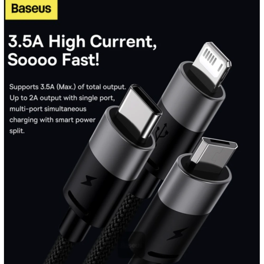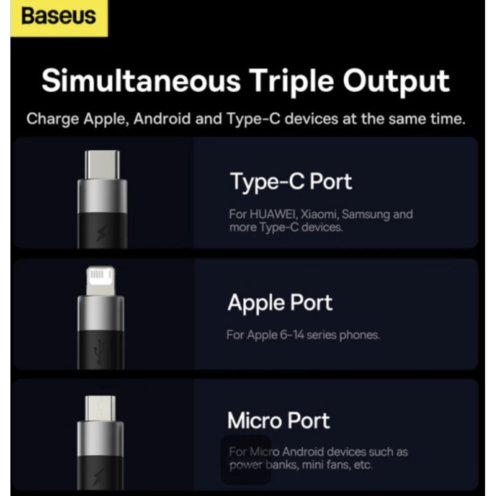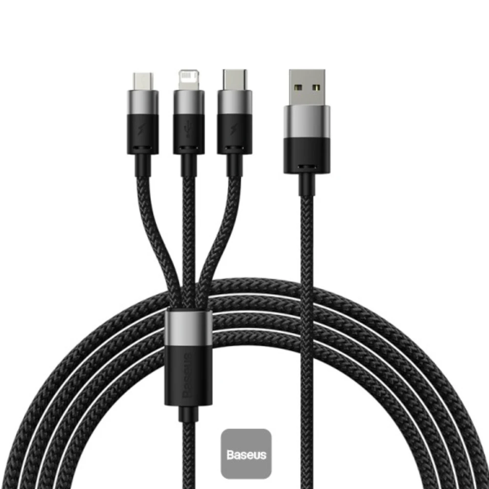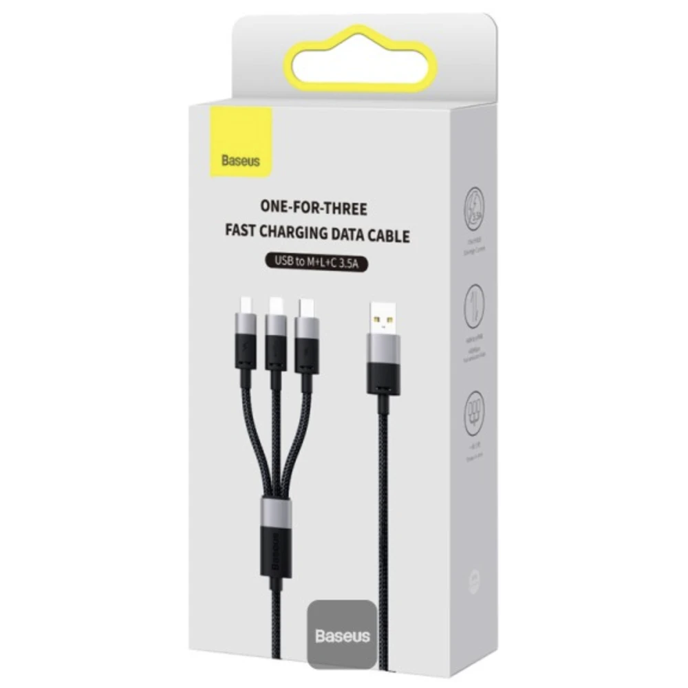 BASEUS USB Lightning + Micro USB + USB Type C transformator Crno 1.2m CAXS000001