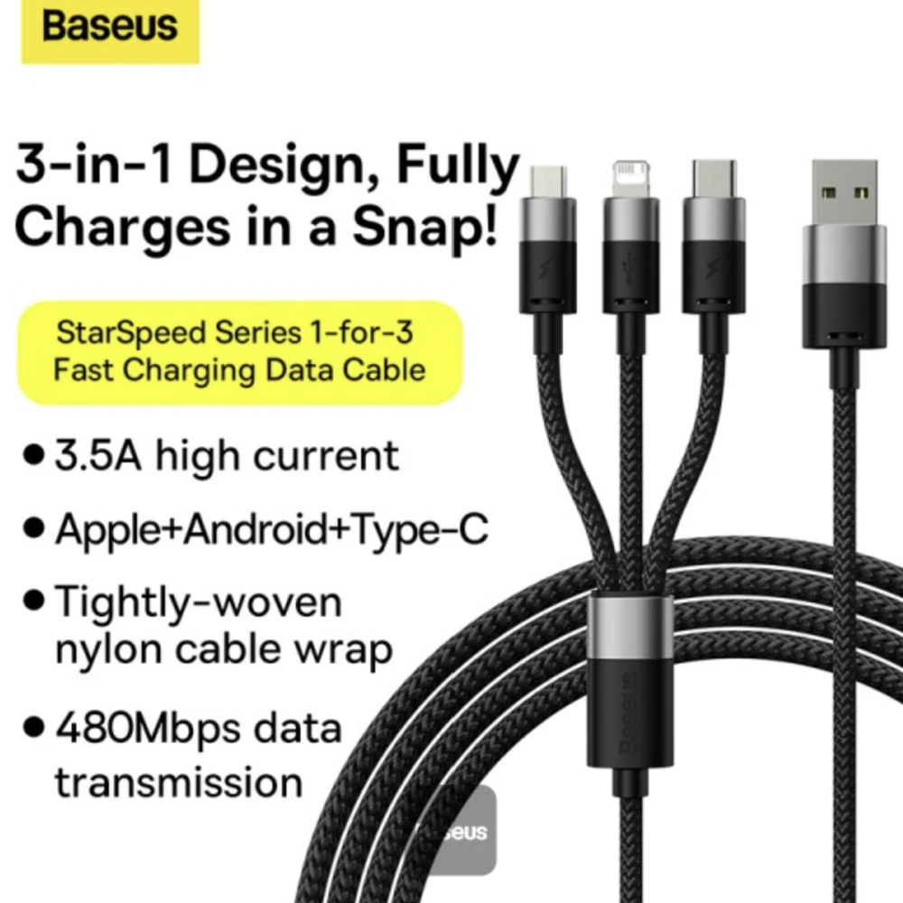 USB pretvornik in polnilni kabel Baseus 3v1 je idealno orodje za izpolnjevanje najrazličnejših vsakodnevnih digitalnih potreb. Zahvaljujoč napredni tehnologiji to ni le preprost podatkovni kabel, temveč prava vsestranska rešitev za visoko učinkovito povezovanje različnih elektronskih naprav. Podpira hitro polnjenje 5V / 3,5A in omogoča hitrosti prenosa podatkov do 480Mbps. Zagotavlja visoko stopnjo varnosti med uporabo. Izstopa tudi po svoji vzdržljivosti in odpornosti proti poškodbam.