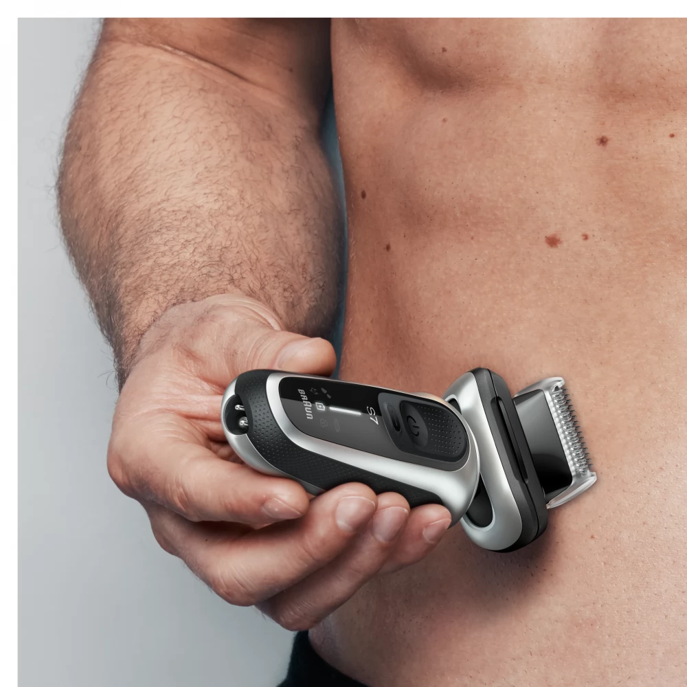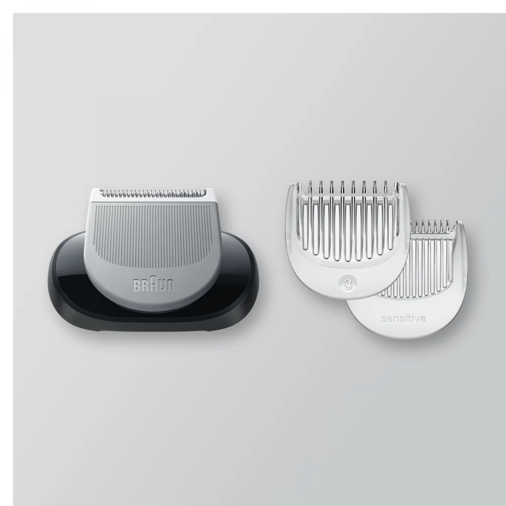 ODSTRANJEVALEC DLAČIC NA TELESU BRAUN za naprave Series 5-6-7 Flex. Spremenite svoj brivnik v odstranjevalec telesnih dlak z eno samo potezo. Z njegovo pomočjo lahko enostavno odstranimo neželene dlake z občutljivih predelov ali jih pristrižemo na velikost 3 mm.