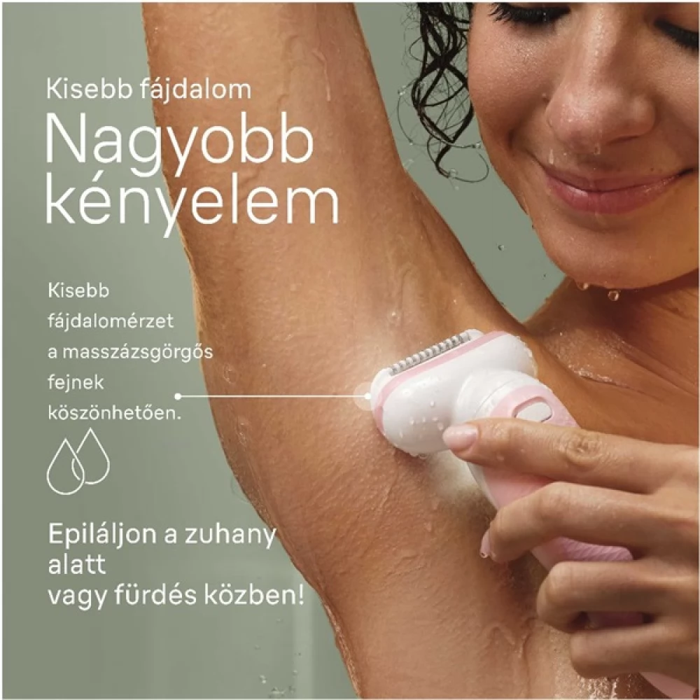 Zahvaljujoč prevleki z masažnim valjem občutite manj bolečin. Poslovite se od neprijetnega občutka čakanja, da dlake ponovno zrastejo, tako kot pri drugih izdelkih za odstranjevanje dlak, kot je vosek. Brezžični epilator Braun Silk-épil 9000 je zasnovan tako, da je priročen in ne zahteva naročanja v kozmetičnem salonu.