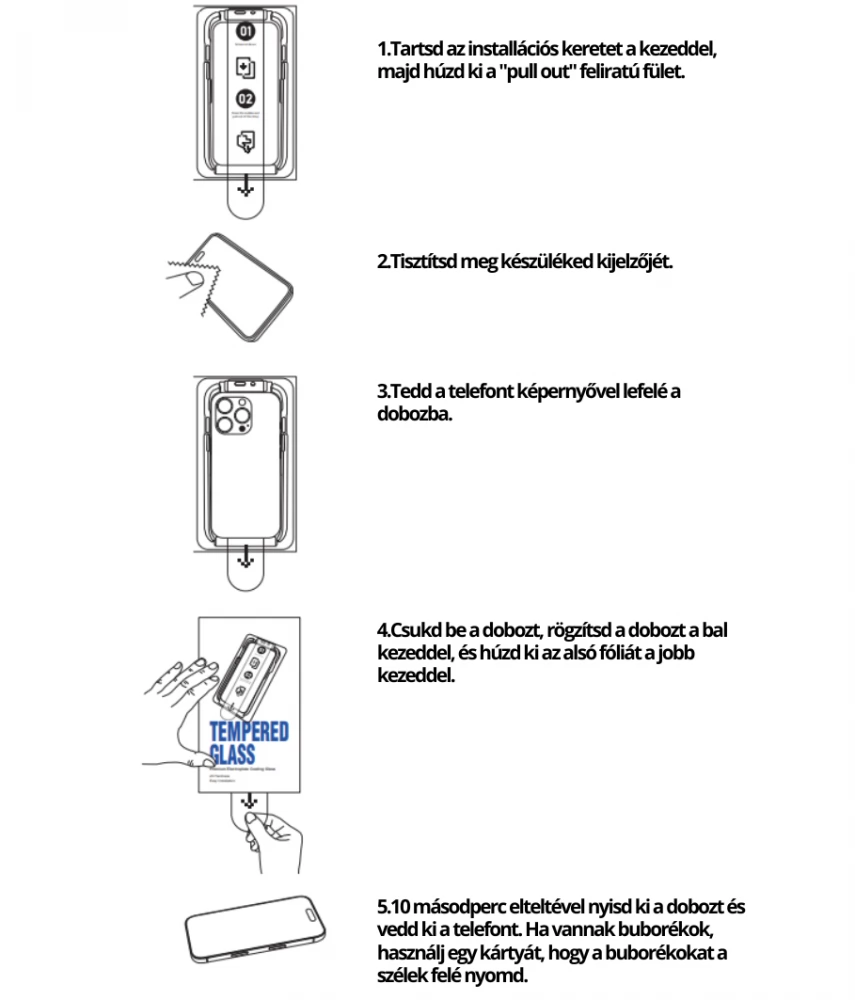 Po 5 sekundah odprite polje in odstranite telefon. Če obstajajo mehurčki, s kartico pritisnite mehurčke proti robom.