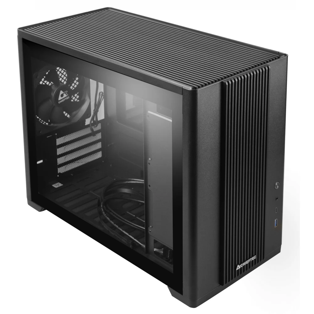 Mini ohišje za računalnik v obliki stolpa formata Micro-ATX z vgrajenim zadnjim ventilatorjem.