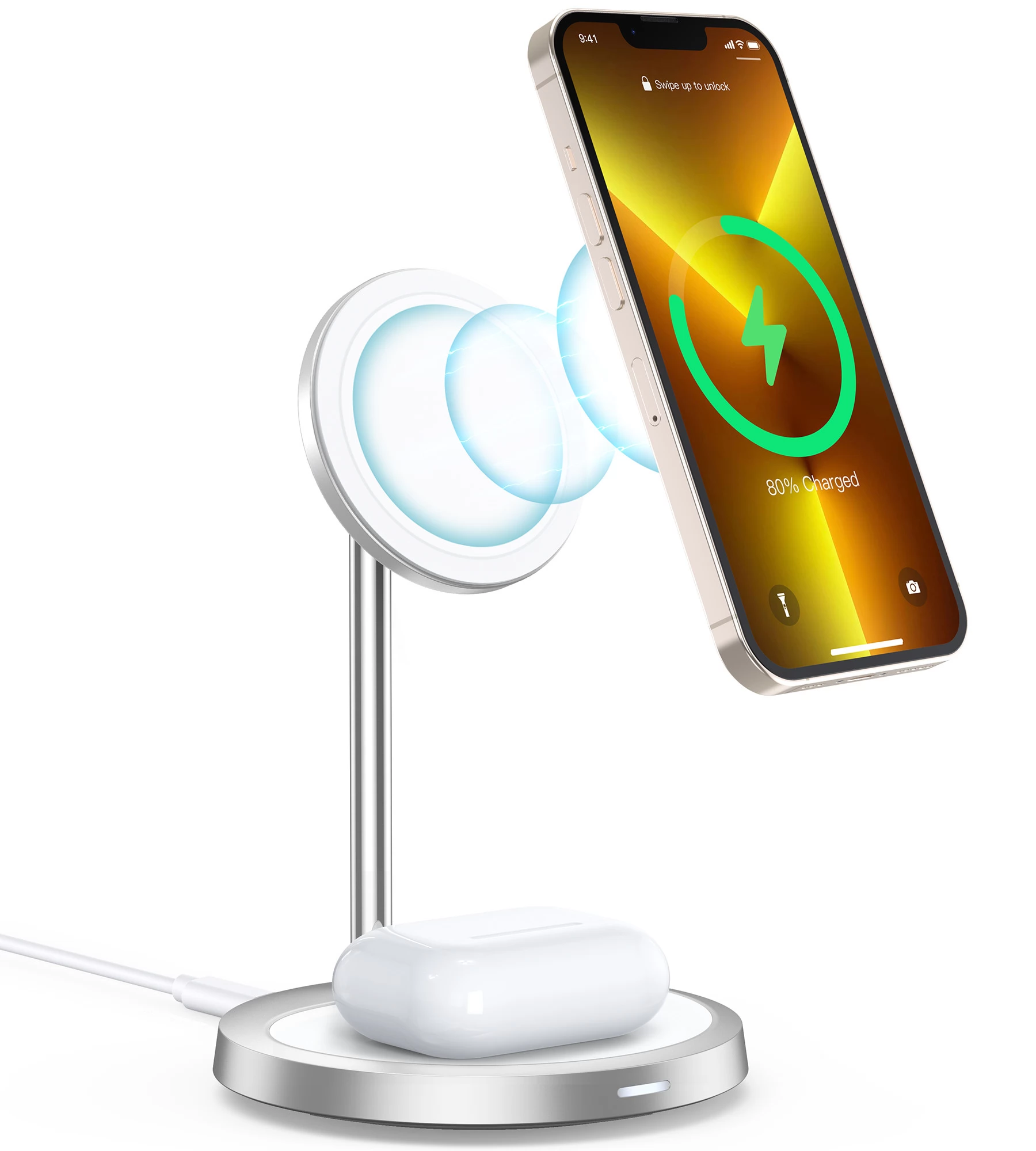 CHOETECH T575-F 2 in 1 Žica bez magnetski stalak za punjenje srebrno