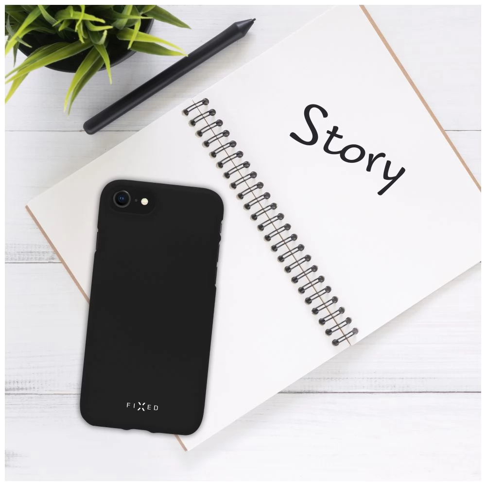 Površina je izdelana iz fine gume, etui je mehak na dotik, ne drsi in je udoben za držanje, rahlo štrleči robovi ščitijo zaslon in lečo kamere pred praskami, na primer ko jih položite na mizo. FIXED Story je zasnovan natančno za vaš telefon, popolnoma se prilega in upošteva pokrov gumbov za upravljanje, kot tudi natančne izreze za zvočnike, polnilni priključek in kamero.