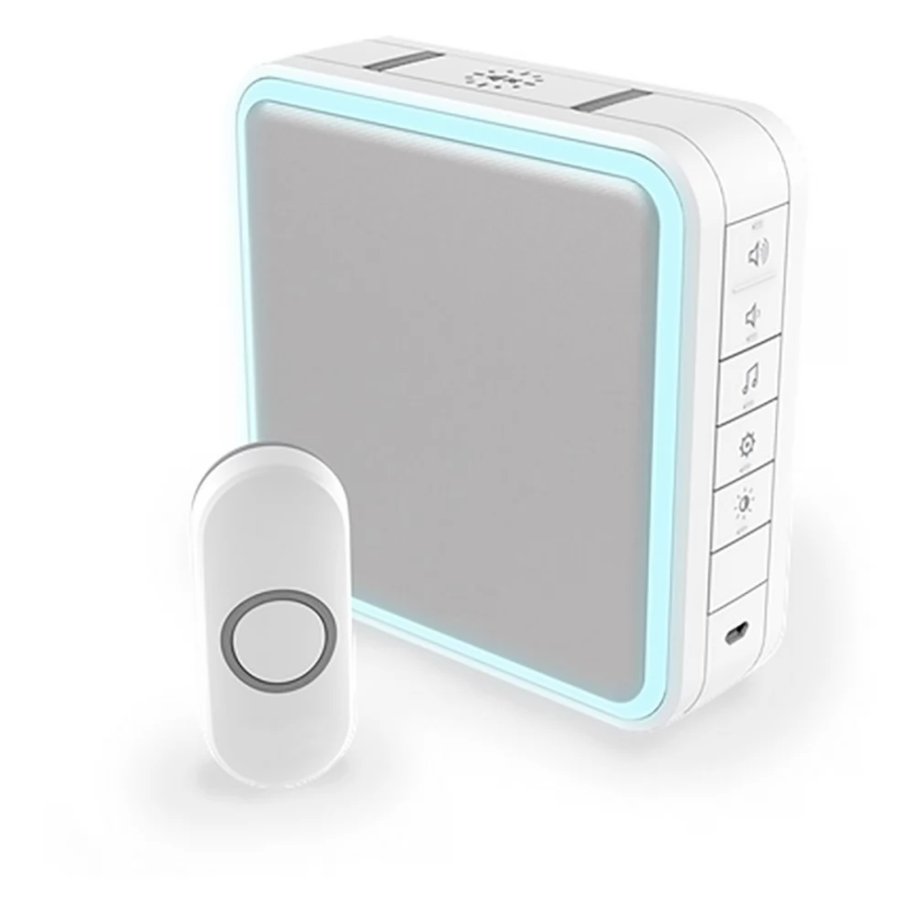 Z zvoncem Honeywell DC915N Series 9 ne boste zamudili nobenega pomembnega obiska ali dostave. Zvonec deluje brezžično, zato je enostaven za uporabo. Gumb za zvonec se lahko poveže z bazo do razdalje 200 metrov, sam zvonec pa se sliši pri največji glasnosti do 100 metrov daleč. Glasnost hišnega zvonca Honeywell DC915N Series 9 se nahaja neposredno na podnožju in jo je mogoče enostavno nastaviti s priročnimi gumbi. Izberemo lahko diskretno zvonjenje zvečer ali, nasprotno, glasno zvonjenje, v prehrupnih okoljih pa ga lahko dopolnimo s svetlobnim signalom. S funkcijo Knock hišni zvonec Honeywell DC91N serije 9 predvaja drugačno melodijo, ko pride družinski član ali prijatelj.