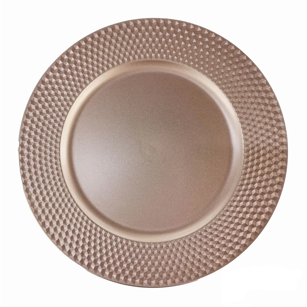 Dekorativni pladenj okrogel 33 cm z rožnatim narebričenim robom.