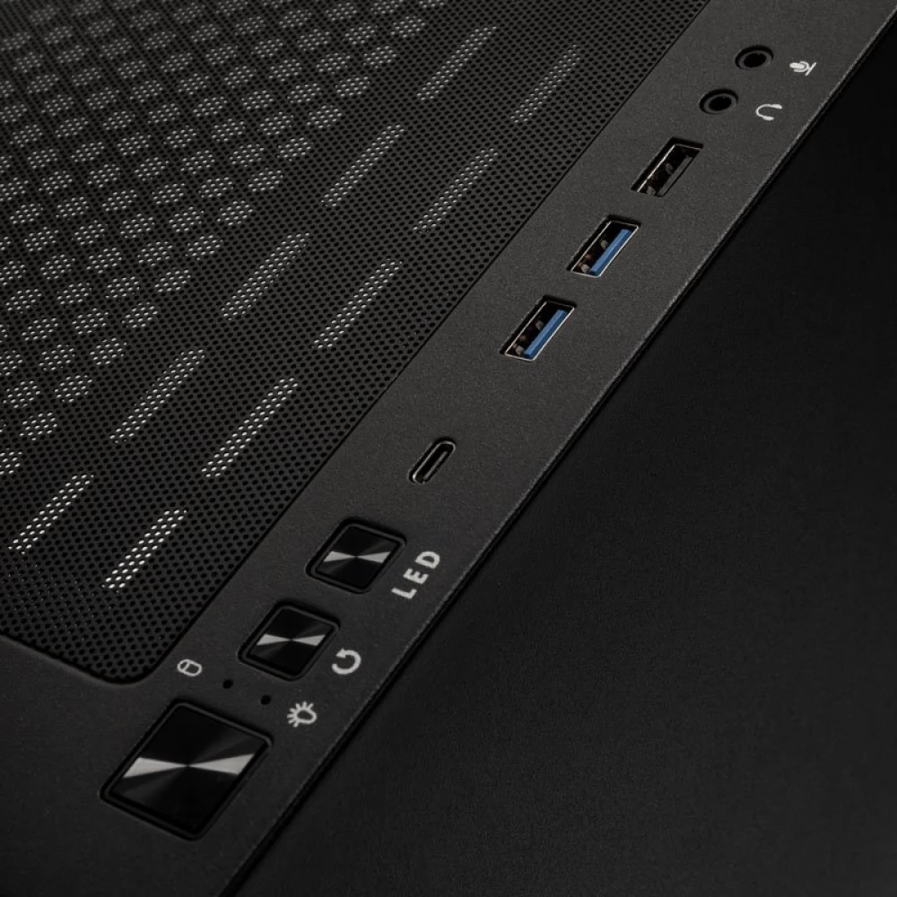 - Sprednja plošča, okrašena z elegantnim vizualnim elementom RGB