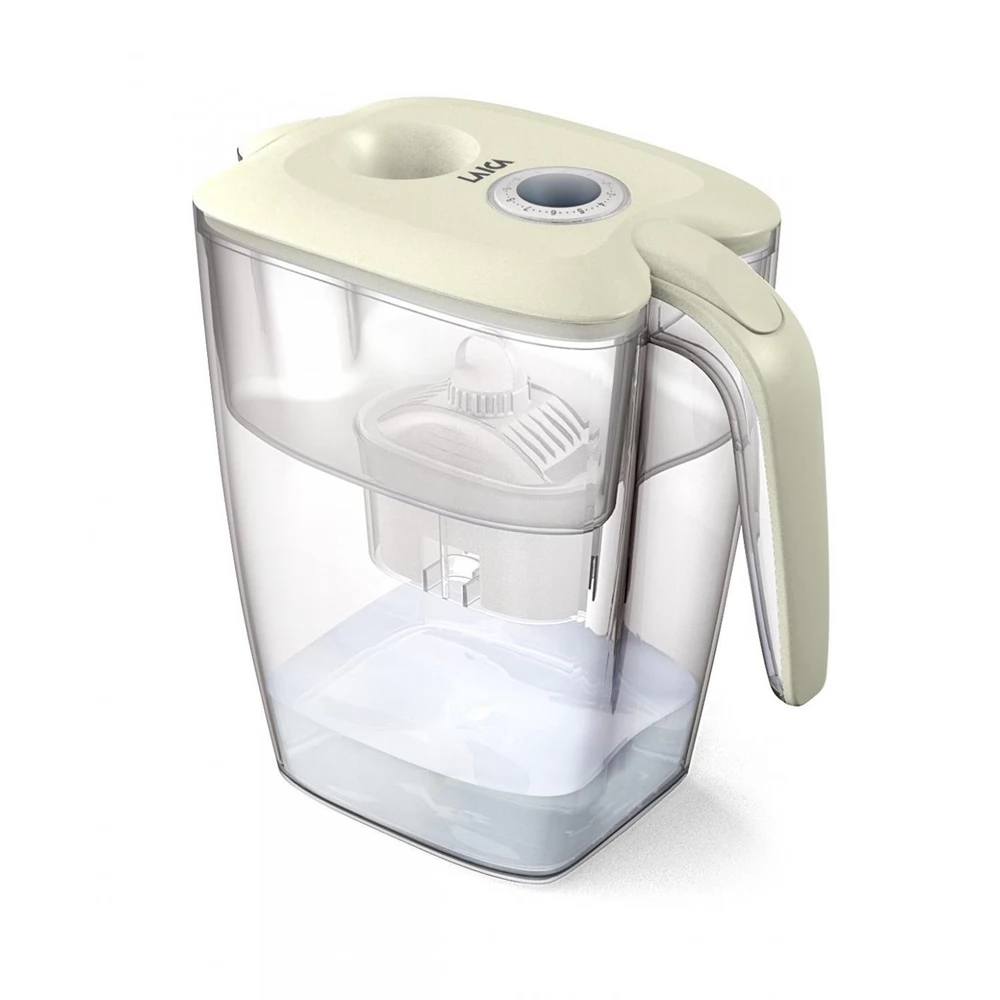 Vrč za nočni vodni filter Laica Róma s pokrovom Cream, mehanskim nočno modrim števcem in 1 univerzalnim filtrskim vložkom bi-flux.