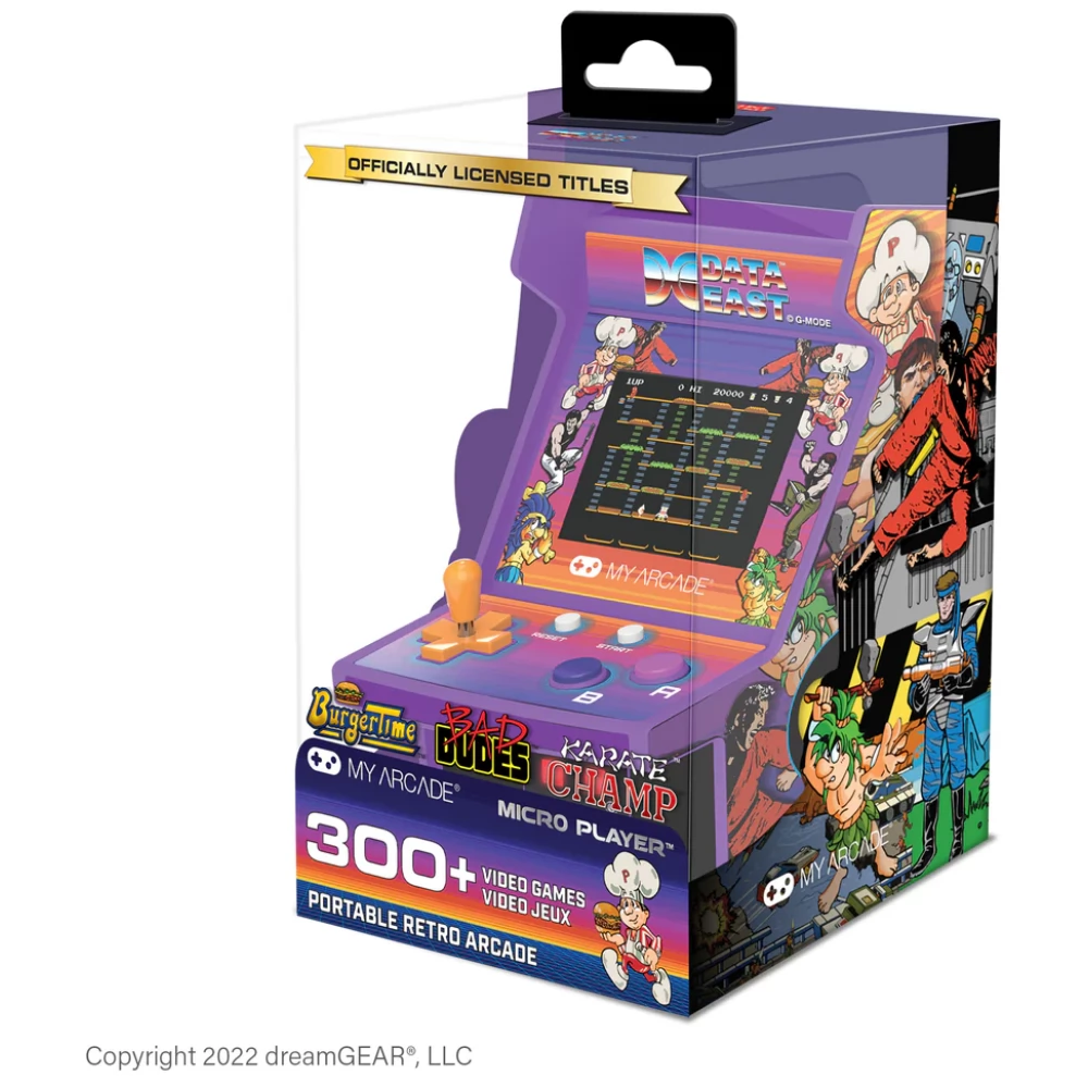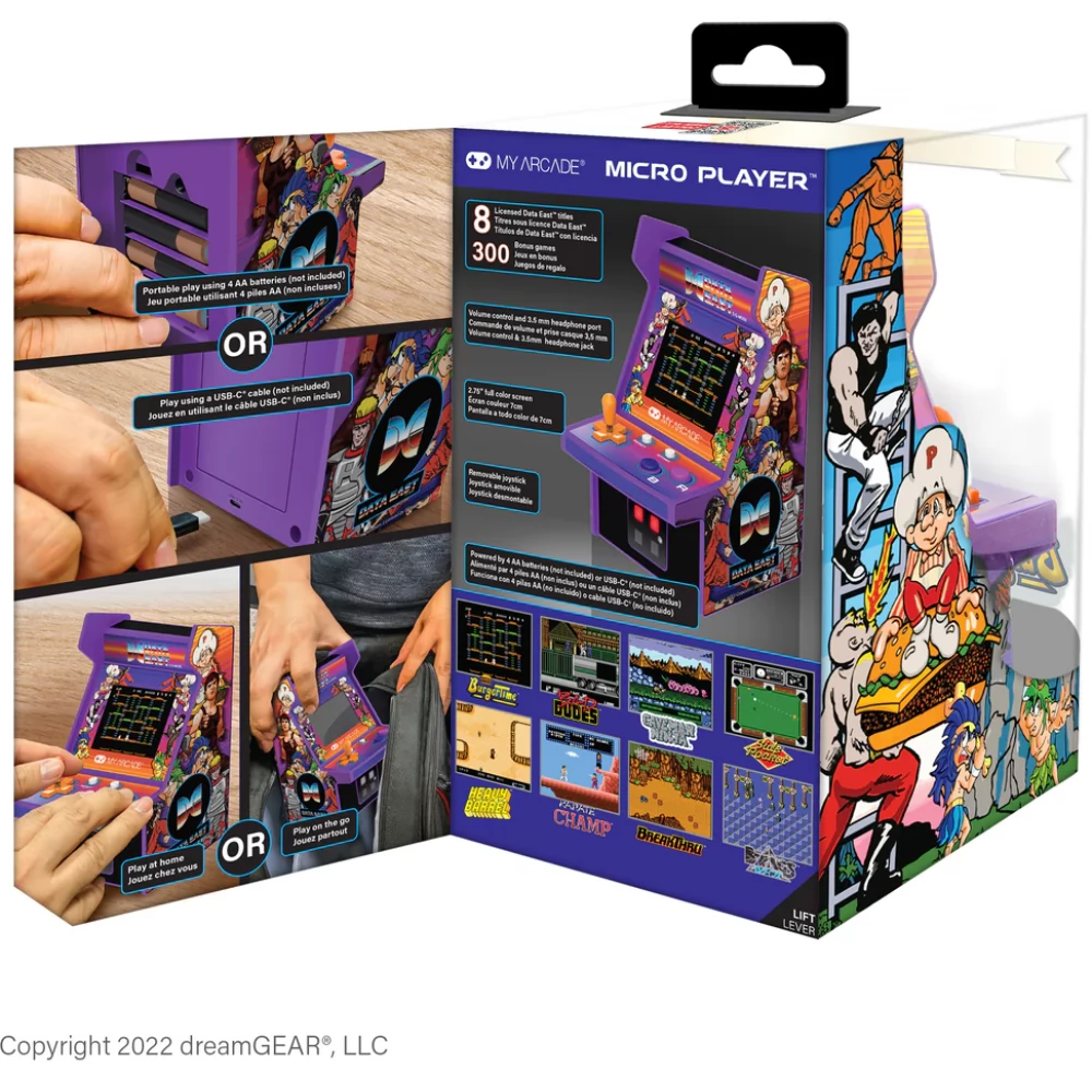 Collectible Micro Player™ je poln nepozabnih iger Data East™. MY ARCADE® se je povezal z legendarnim razvijalcem iger Data East, da bi vam predstavil vaše najljubše klasike Data East. Ta mikropredvajalnik vas bo popeljal nazaj v čase, ko ste potrebovali le četrtino, od tega, da ste v BurgerTime™ oboroženi le s poprovim razpršilcem ali da ste dovolj slab tip, da rešite predsednika v Bad Dudes™.