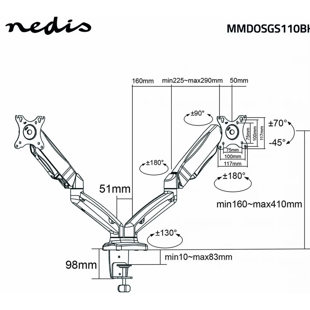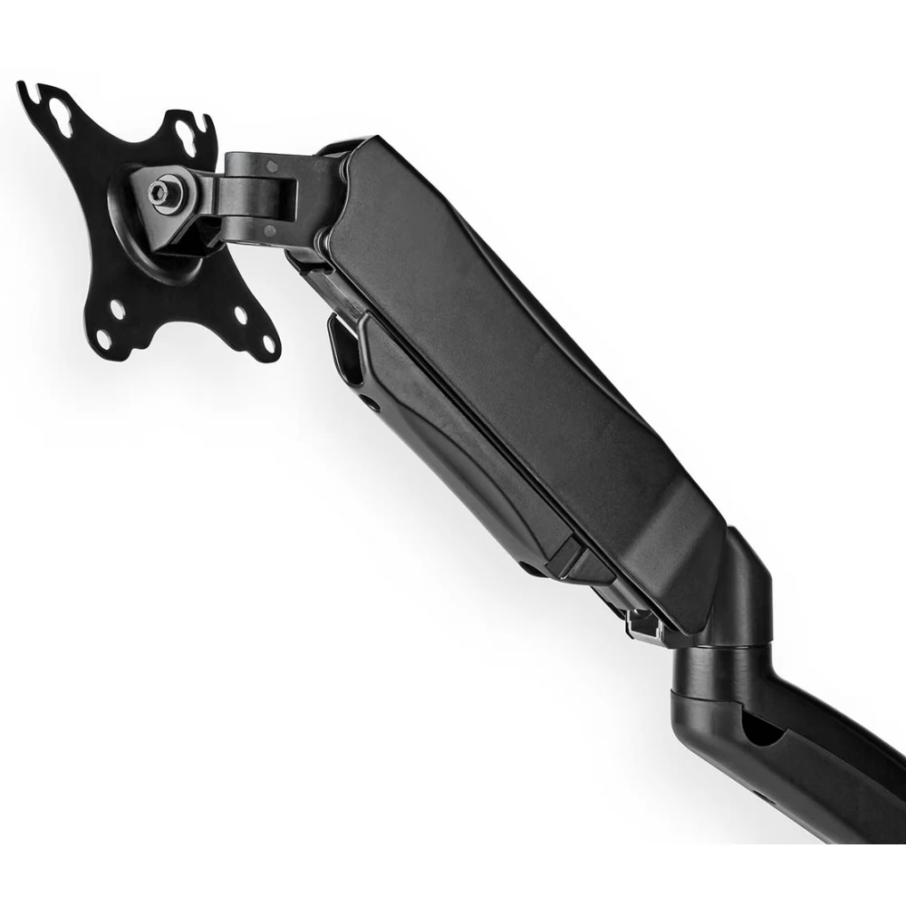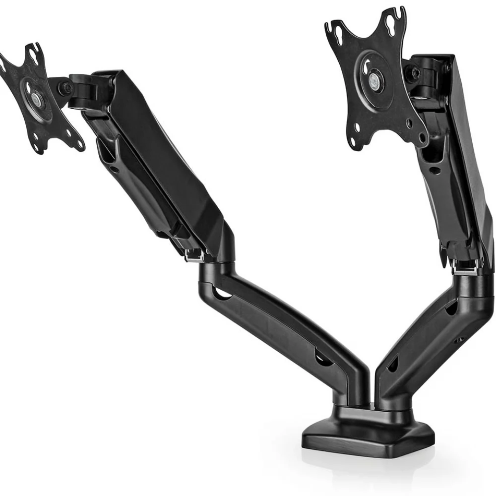 Ta namizna montažna roka za monitor Nedis s polnim gibanjem je primerna za dva ploska zaslona do 32 palcev. Vsestranske možnosti nagiba (50°), vrtenja (360°) in vrtenja (180°) vam omogočajo, da nastavek prilagodite kateremu koli kotu gledanja. Ima visokokakovosten plinski vzmetni mehanizem, ki omogoča brez težav nastavitev za ustvarjanje popolnega delovnega položaja.
