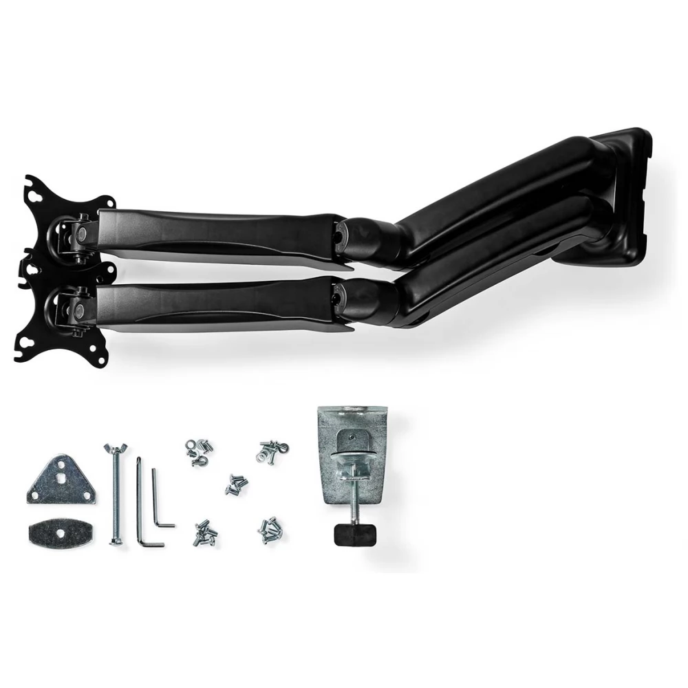 - Nosilec monitorja s plinsko vzmetjo za pritrditev dveh 32" zaslonov na mizo