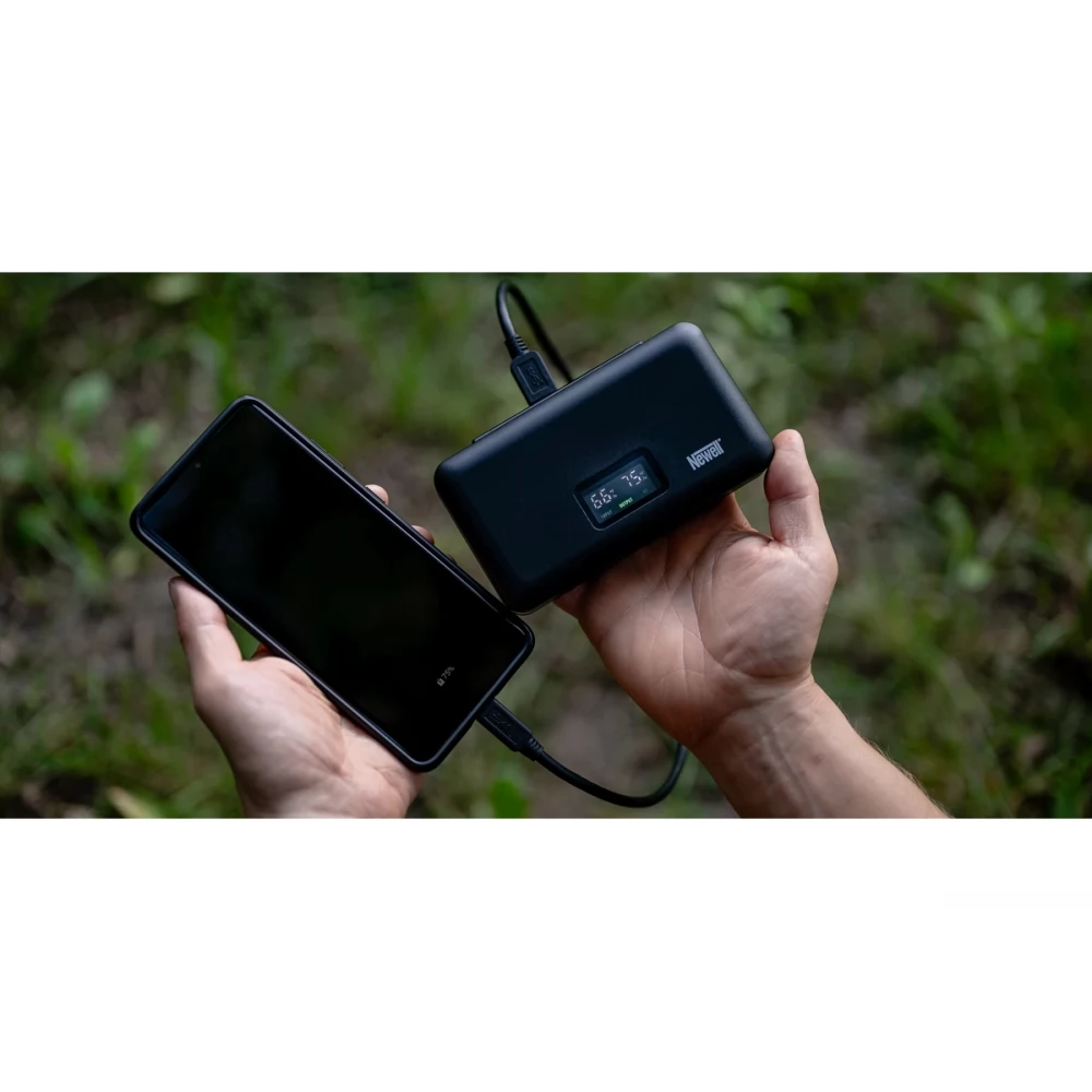 Dvokanalni polnilec Newell LCD s funkcijo powerbank in čitalnikom SD kartic je opremljen z vsemi funkcijami, ki jih potrebujete za uspešno polnjenje baterij. To inovativno orodje vam omogoča organiziranje vaših fotografskih dodatkov, ki vas spremljajo povsod vsak dan. Vgrajen čitalnik pomnilniških kartic SD vam omogoča takojšen prenos datotek, ne da bi morali posegati po dodatnih napravah. Ko vstavite baterije v polnilnik, lahko polnilec spremenite v power bank. Napravi je priložen tudi vgrajen USB kabel. Intuitivno upravljanje, LCD zaslon in natančne oznake vrat in vtičnic zagotavljajo delovanje brez težav. To ni le polnilec - ta naprava je vaš spremljevalec pri bolj praktični izvedbi foto-video projektov!