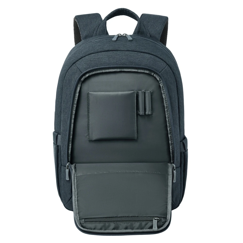 - Sprednji predal za shranjevanje z zadrgo vključuje organizacijsko ploščo s predelki za pametni telefon, vizitke, pisala in kable.