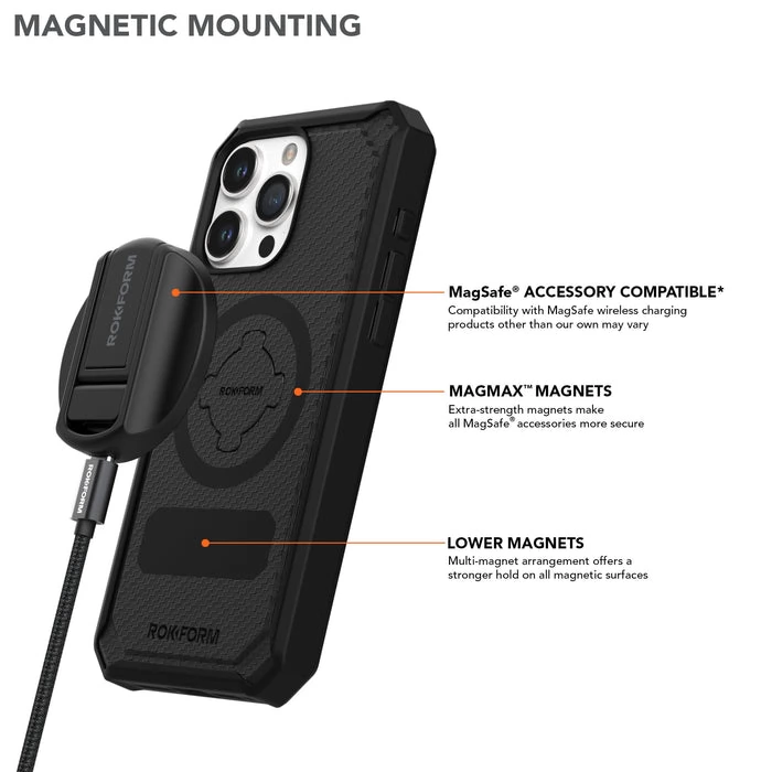 Trije strateško nameščeni magnetni sistemi iPhone 15 Pro Max Rugged Case se varno pritrdijo na magnetne nosilce in zagotavljajo varno pritrditev na avtomobile, kolesa, motorna kolesa, vozičke za golf ali katero koli magnetno površino. Naši neodimovi magneti N52 so najkakovostnejši razpoložljivi magneti in zagotavljajo trikrat večjo zadrževalno moč kot magneti, ki se običajno uporabljajo na ohišjih telefonov. GLADEK, ELEGANTEN IN TANEK Uporabljamo visokokakovostne lahke, a na udarce odporne polikarbonatne zaščitne materiale, da je naš ovitek za iPhone 15 Plus stabilen – brez občutka teže v žepu. Z elegantno in tanko zasnovo so naše robustne torbice udobne za držanje in jih je enostavno potisniti v žep in iz njega. Dobite bolj elegantno zaščito z manj teže in mase. IDEALNO ZA IGRIŠČE ZA GOLF Vsi kovčki Rokform so združljivi z našim patentiranim sistemom za pritrditev vijakov RokLock™. Ne glede na vrsto so naši ovitki za iPhone 15, iPhone 15 Pro, Plus in iPhone 15 Pro Max pokriti z našimi masivnimi ovitki na igrišču in izven njega – izbira golfskih profesionalcev od leta 2012. Namestite svoj telefon na košaro in uživajte v 18 luknjah brez strahu, da bi se vaš iPhone zrahljal in poškodoval. Naše zvočnike G-ROK lahko celo dodate odličnemu zvočnemu zapisu na povezavah.