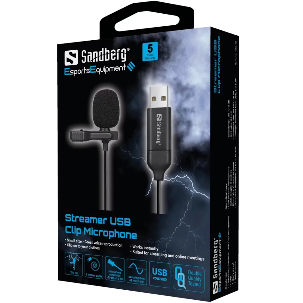 SANDBERG 126-40 Streamer USB Clip Mikrofon crno