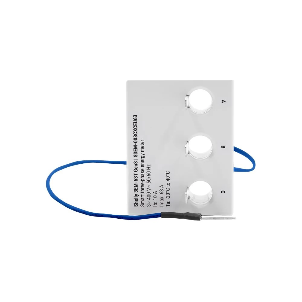 Shelly 3EM-63T GEN3 je napredna trifazna naprava za energijo, posebej zasnovana za natančno spremljanje porabe električne energije v treh ločenih fazah ali treh neodvisnih enofaznih vezjih. Zahvaljujoč kompaktnemu dizajnu ga je mogoče namestiti neposredno v električno omaro, bodisi nad odklopnikom, tako da v električni omari ne rezervira ločenega modula. Idealno za domače in industrijske aplikacije.