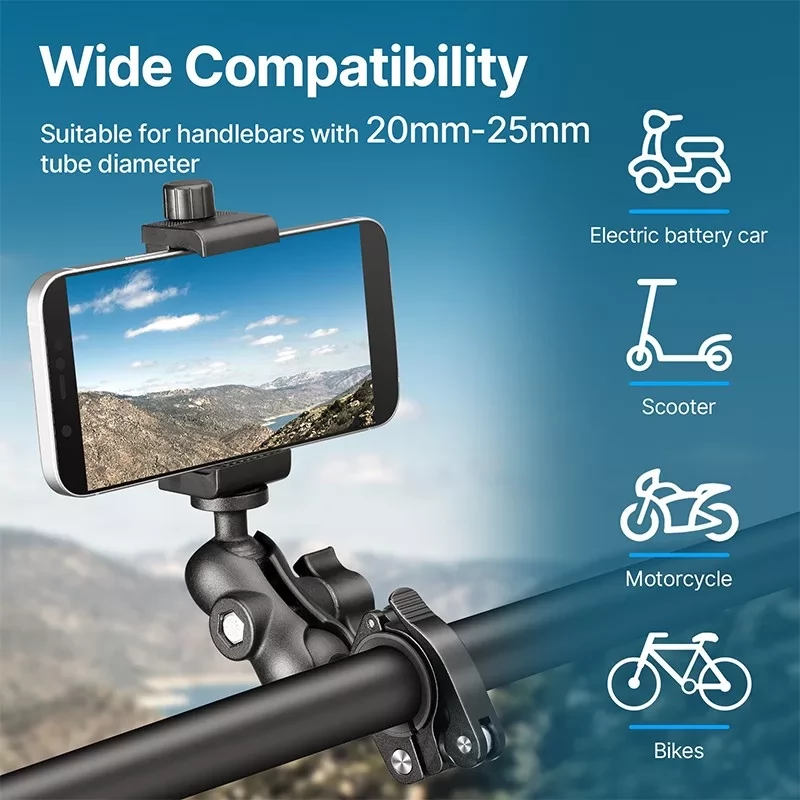 Ulanzi U-Select MP-5 je vsestranski cevni nosilec, ki je idealna izbira za kolesarje. Konzola varno pritrdi telefone in akcijske kamere na krmilo kolesa, kar vam omogoča navigacijo, snemanje in uporabo drugih uporabnih funkcij med vožnjo.